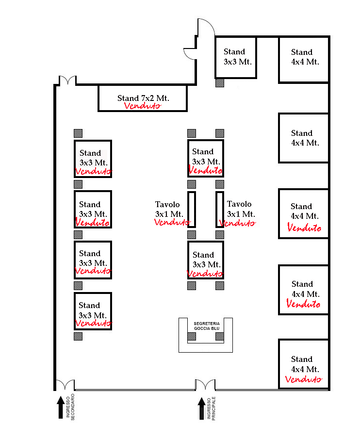 In pochi giorni (i contatti alle aziende sono iniziati alle 18 del 25 ottobre), come vedete dalla planimetria allegata sono già stati venduti ben 6 spazi espositivi. Invitiamo tutti gli operatori del settore che hanno riceuto l’invito ufficiale tramite mail a comunicare quanto prima la loro adesione. Gli spazi espositivi come vedete sono ridotti.