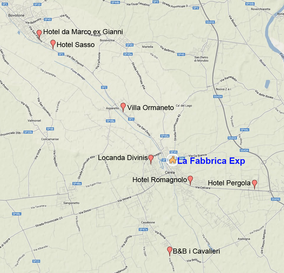 Di seguito sono riportate le strutture ricettive nei pressi del polo fieristico le quali hanno stipulato una convenzione con Goccia Blu Veneto al fine di offrire tariffe agevolate ad espositori e visitatori della manifestazione AQUARIA #cerea2014.