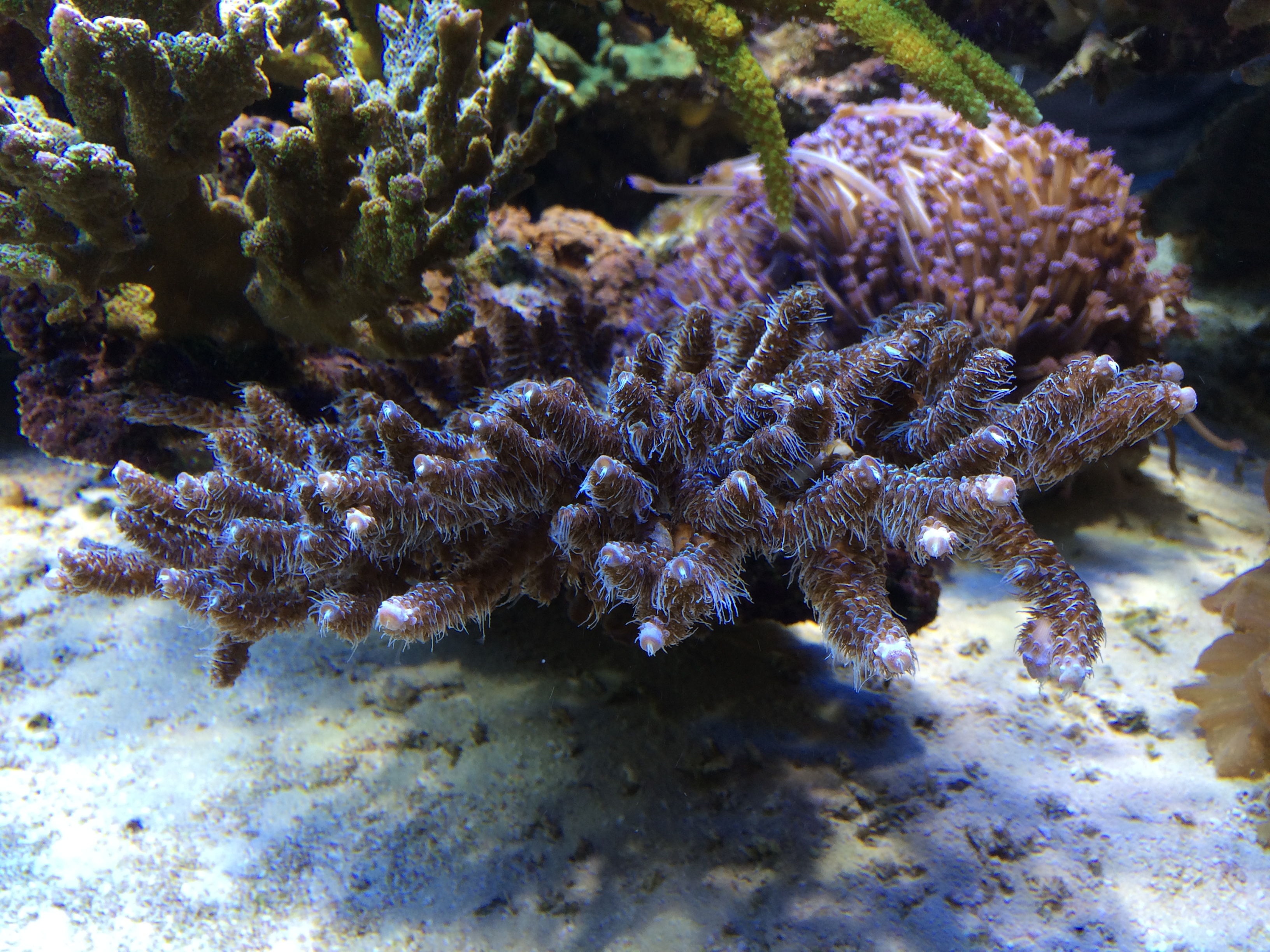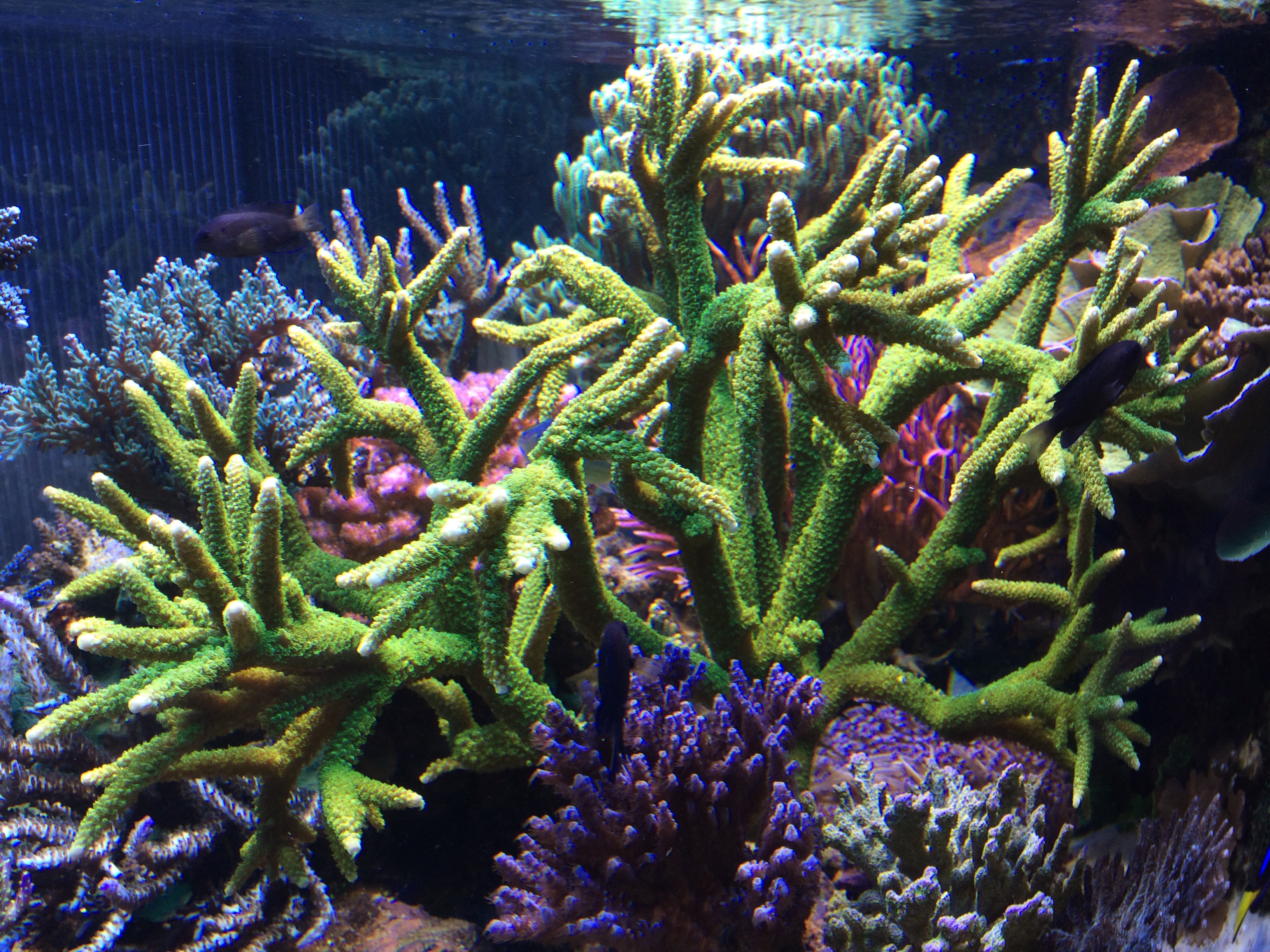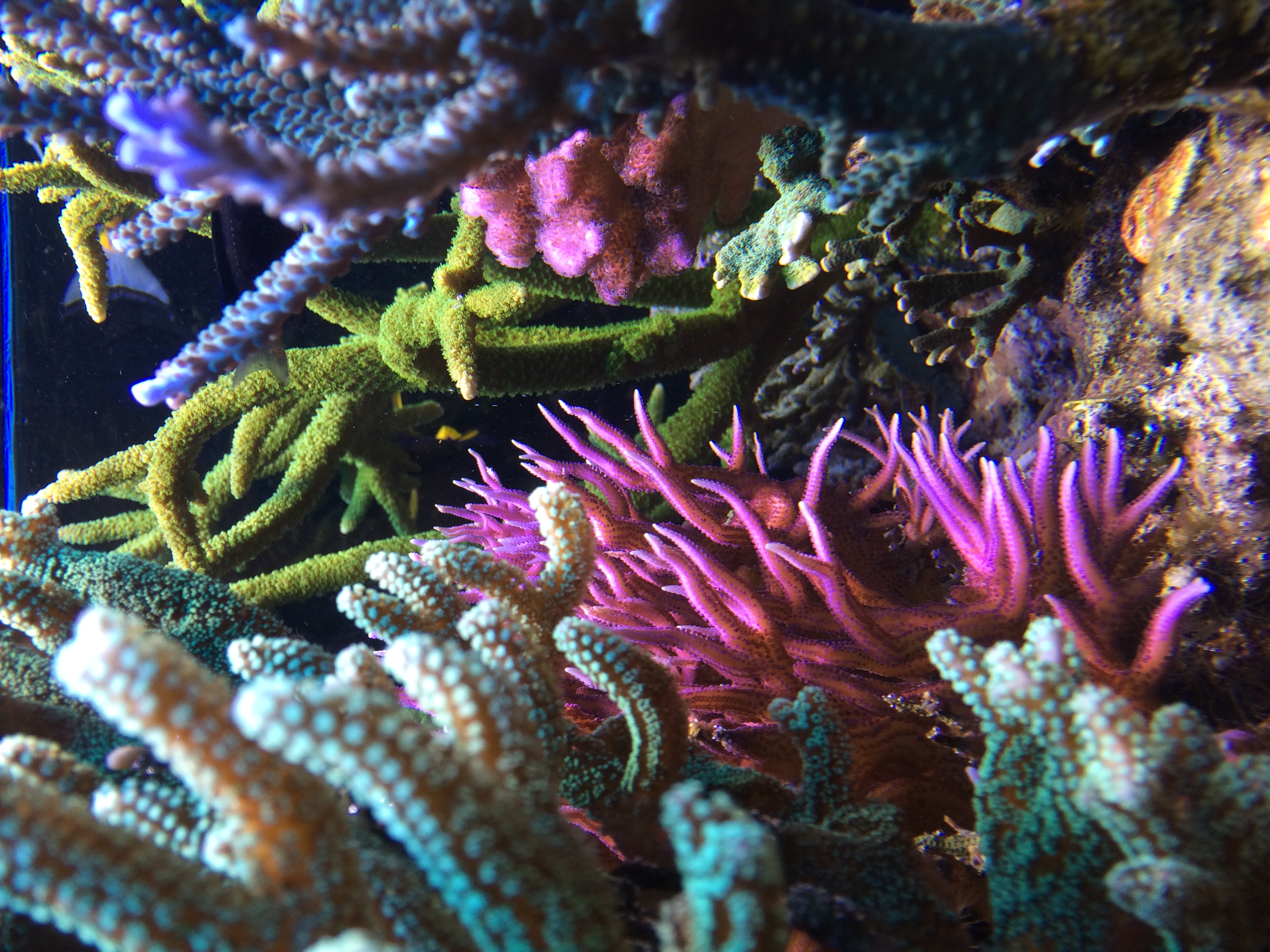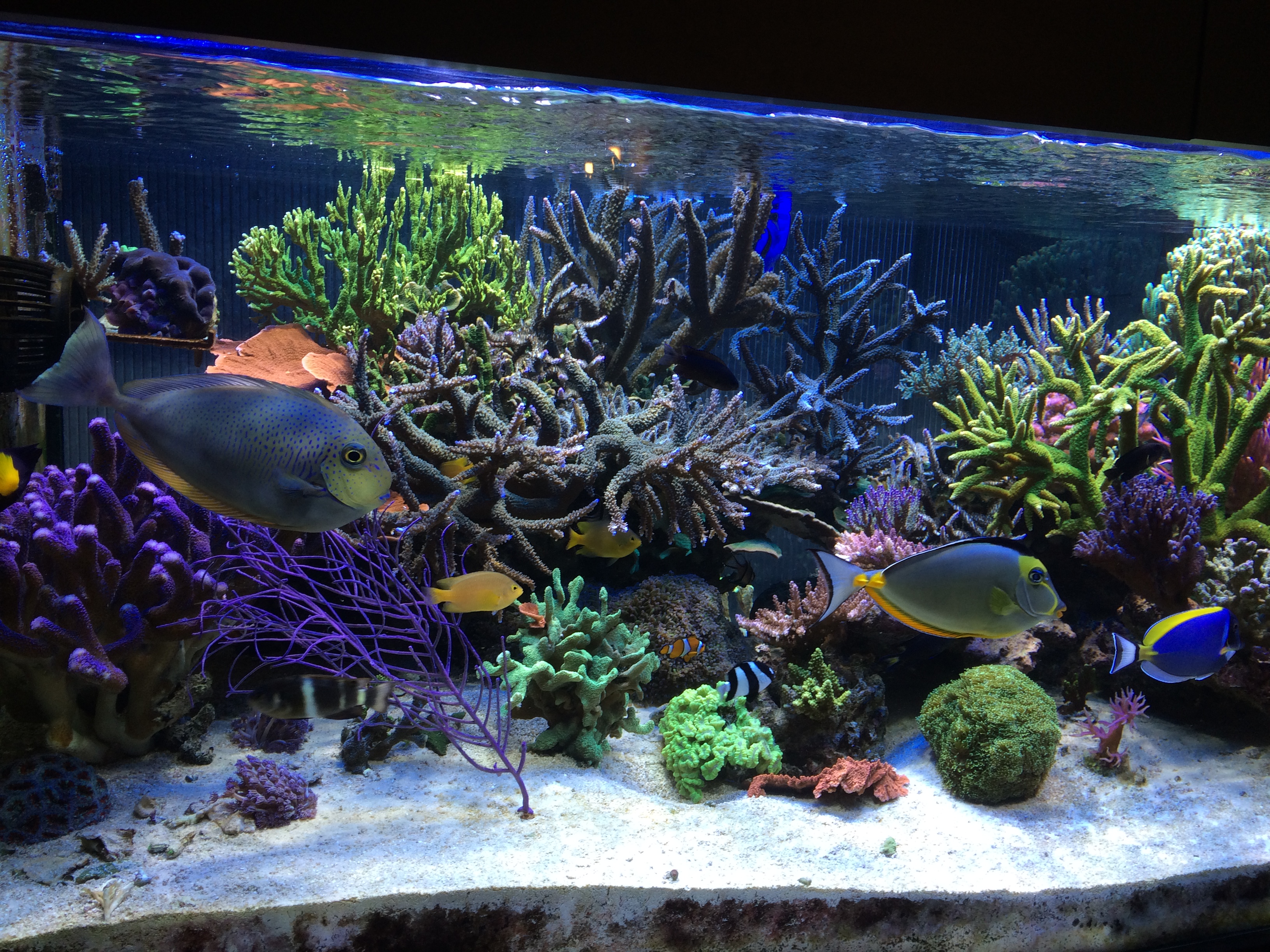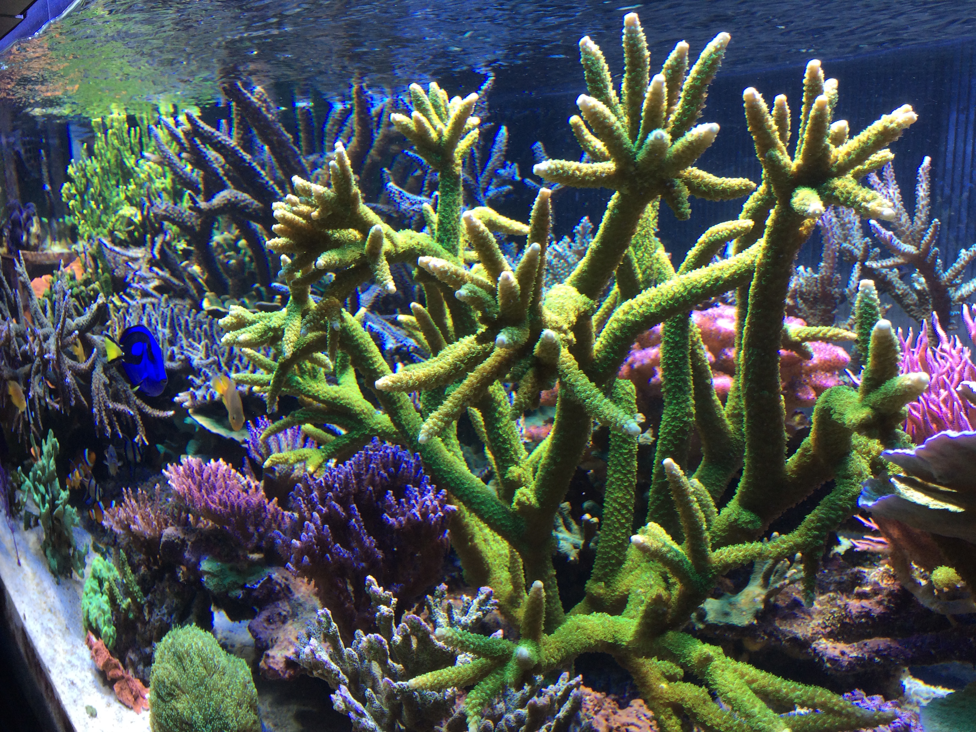 Come potete vedere dalle fotografie, la vasca è dedicata in prevalenza all’allevamento di corali SPS, anche se in vasca sono presenti diversi LPS e addirittura una Gorgonia.