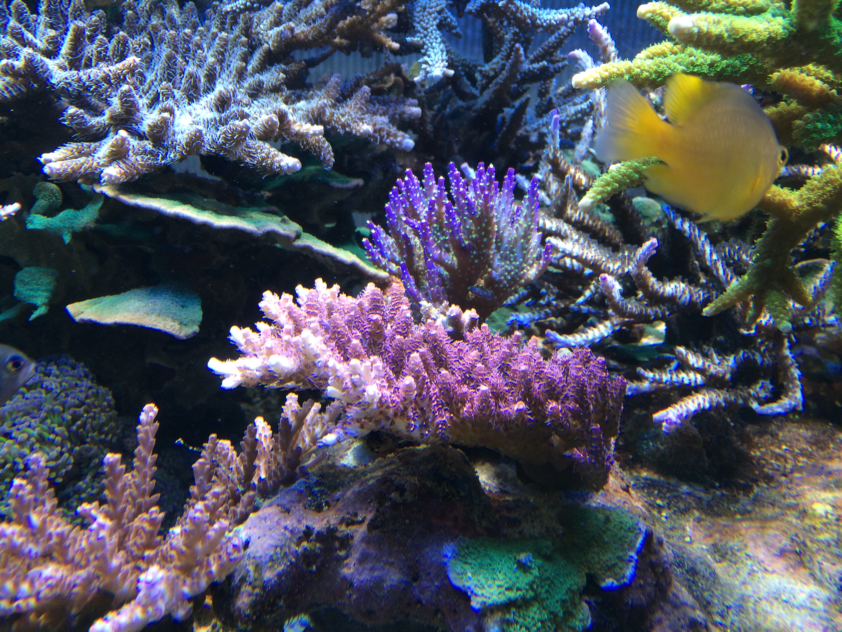 Sarebbe logico pensare che una gestione così semplicistica della vasca e con così tanti pesci, possa andare a cozzare a discapito della colorazione dei coralli. Sicuramente una vasca zeovittata o spinta ha colori più accesi, ma giudicate voi dalle foto i colori che il nostro Mauro sta ottenendo sono poi così male!!